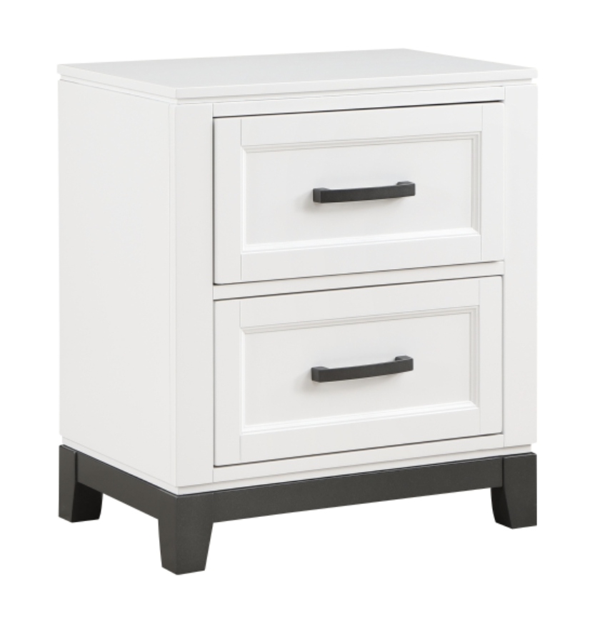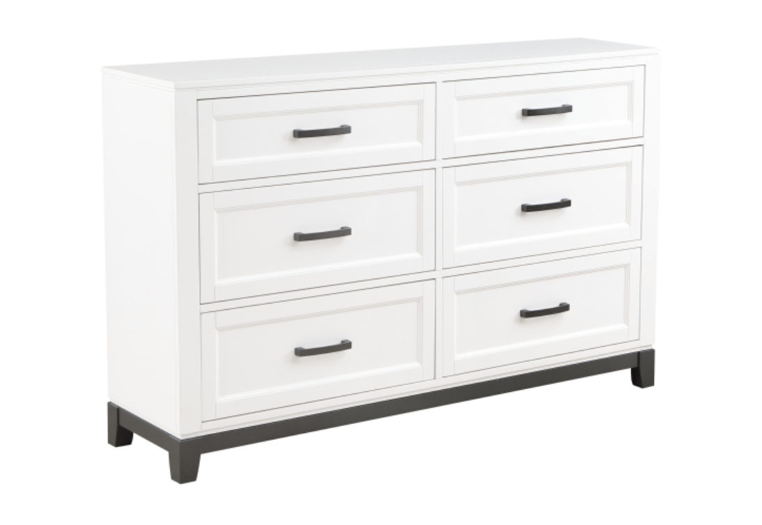 The Garretson Collection blends transitional lines with rustic styling to create an elegant addition for your bedroom. The distinct grain features a 2-tone finish. Metal bar hardware fronts the picture frame drawer fronts of the storage footboard, dresser, mirror, and chest. The two drawers of the low-profile footboard create additional space within your room for soft good storage.