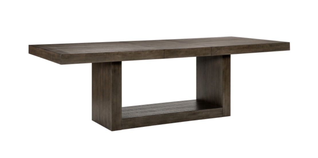 In a break from the minimalistic styling of contemporary design, the Brookings Collection provides a substantial platform for your dining pleasure. The acacia veneer of the collection is treated to a brown finish, its hue a neutral addition to your space. An open box-frame rectangular pedestal supports the tabletop. The collection’s side chairs feature textured gray fabric seats with a wood top-rail and fan-stitched seatbacks. An accompanying server provides ample behind door in-space storage for your linens and tabletop décor.